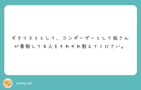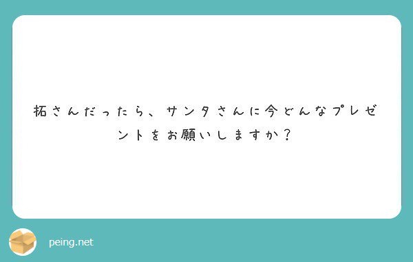 #質問箱 #peing_pentagon_taku peing.net/q/2d5e862b-898… pic.twitter.com/FUnGjZr4LU2017年12月15日 17:04