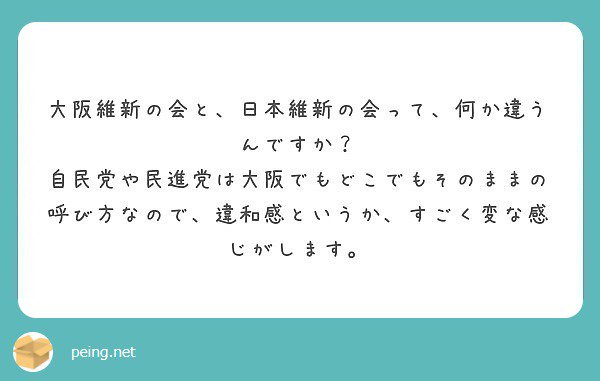 実態としては、大阪維新の会=日本維新の会大阪府総支部、ですが、大事なことは、日本維新の会がなくなっても大阪維新の会はなくならいということです。
