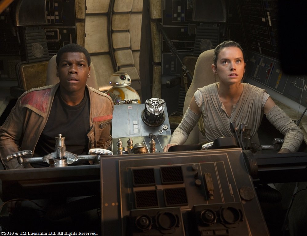 フォースの覚醒のキャストとレイ役デイジーリドリーとフィン役ジョンボイエガの撮影中のラップ。今は亡きレイア役のキャリーフィッシャーの姿も...
