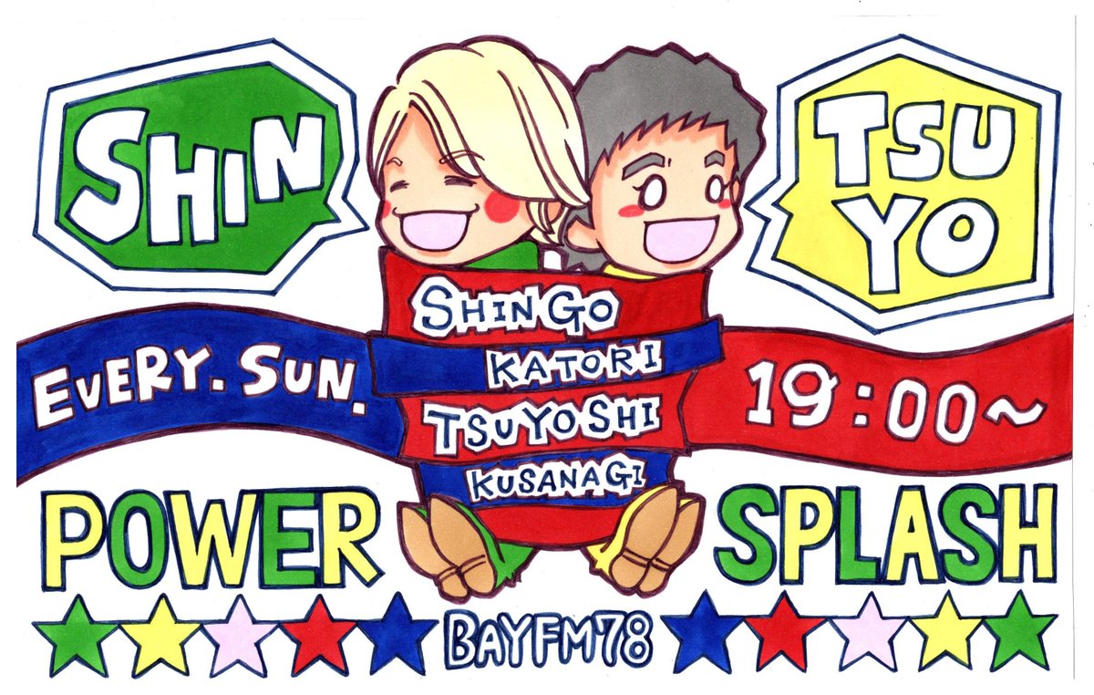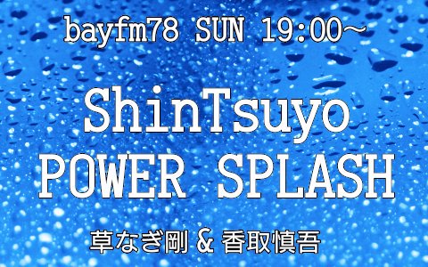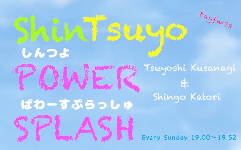 19:00~香取慎吾 @ktrsngofficial 草磲剛 @ksngtysofficial『ShinTsuyo POWER SPLASH』 #パワスプ #しんつよ ⇒shintsuyo@bayfm.co.jp #bayfm radiko.jp/#BAYFM78