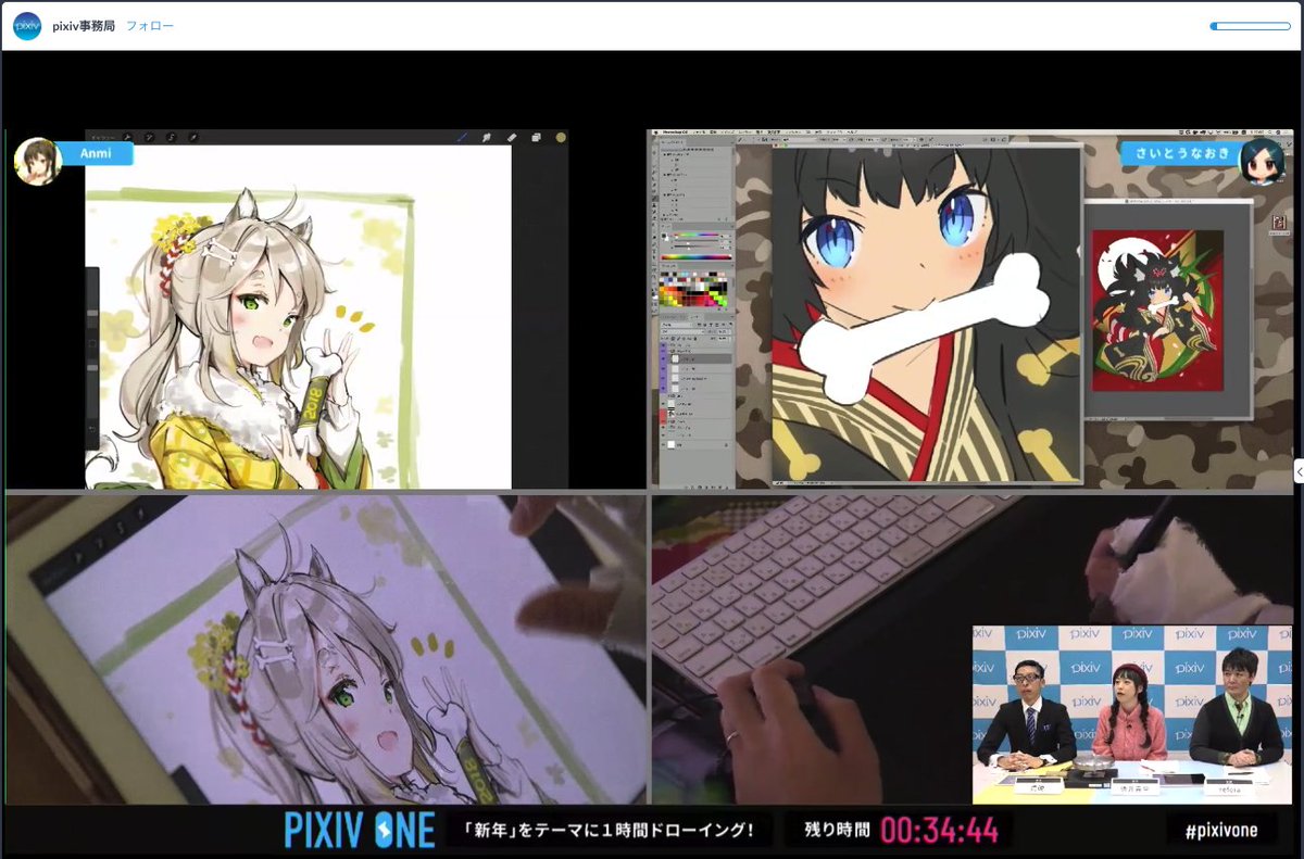 60分間のドローイングイベント「pixiv ONE」!Anmiさん、さいとうなおきさんによるドローイングが終了しました!!お疲れ様です!!MCによる解説はまだ続きますよ!