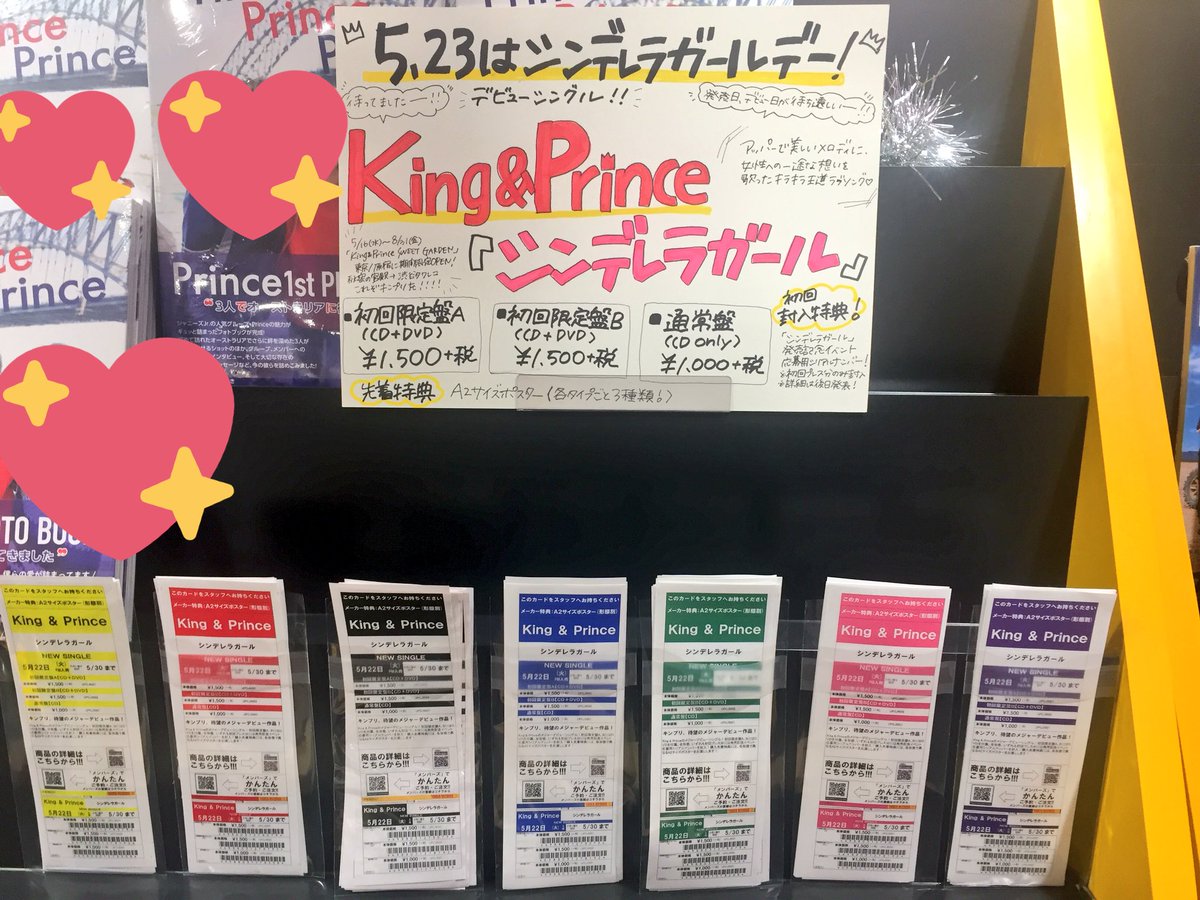 【King & Prince】デビュー・シングル「シンデレラガール」5/23発売決定!先着特典はポスター(3形態別絵柄)。また、発売記念イベントの応募用シリアルナンバーも封入!ご予約受付中! #キンプリ #KingPrince pic.twitter.com/i0Mcvvgye6