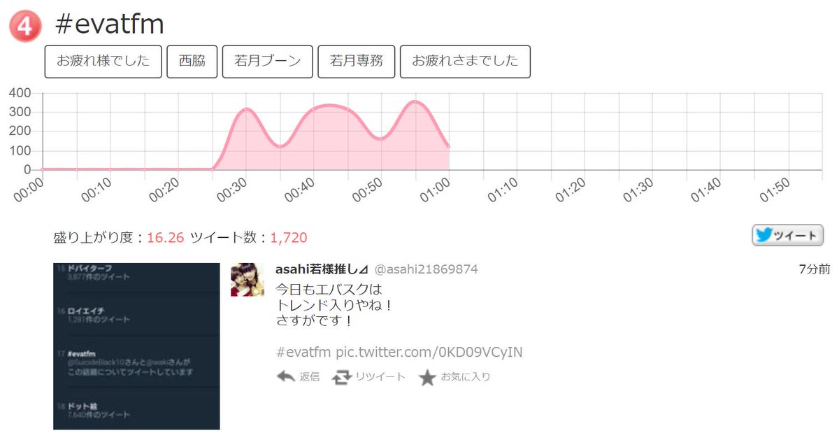 深夜のラジオ番組単体で Twitter トレンド上位(4位)を今夜もいただいております(エイプリルフールを除くと実質 2位)。