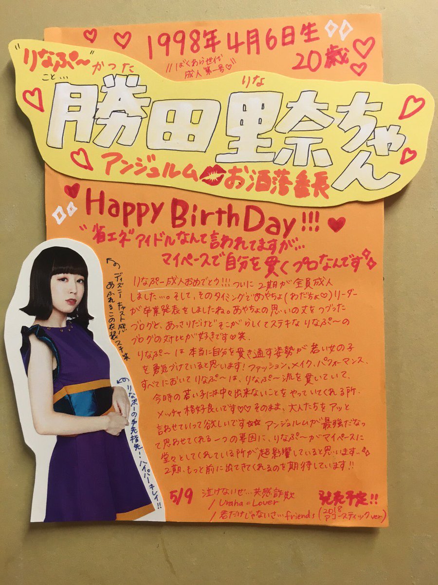 本日4/6は、 #アンジュルム のオシャレ番長💋😎りなぷ~こと #勝田里奈 ちゃんのお誕生日です🧡りなぷ~のファッション、メイク、パフォーマンス、全てにおいて"自分"がしっかりしているところが最高にイカしてます🤘お強い…😈あやちょの卒業まであと1年…磨きかけてこうぜ‼️(ゆい) #勝田里奈生誕祭 pic.twitter.com/1tbJAW61df