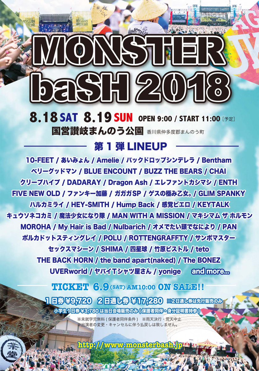 8/18(土)~8/19(日)国営讃岐まんのう公園にて開催される「MONSTER baSH 2018」に出演します!