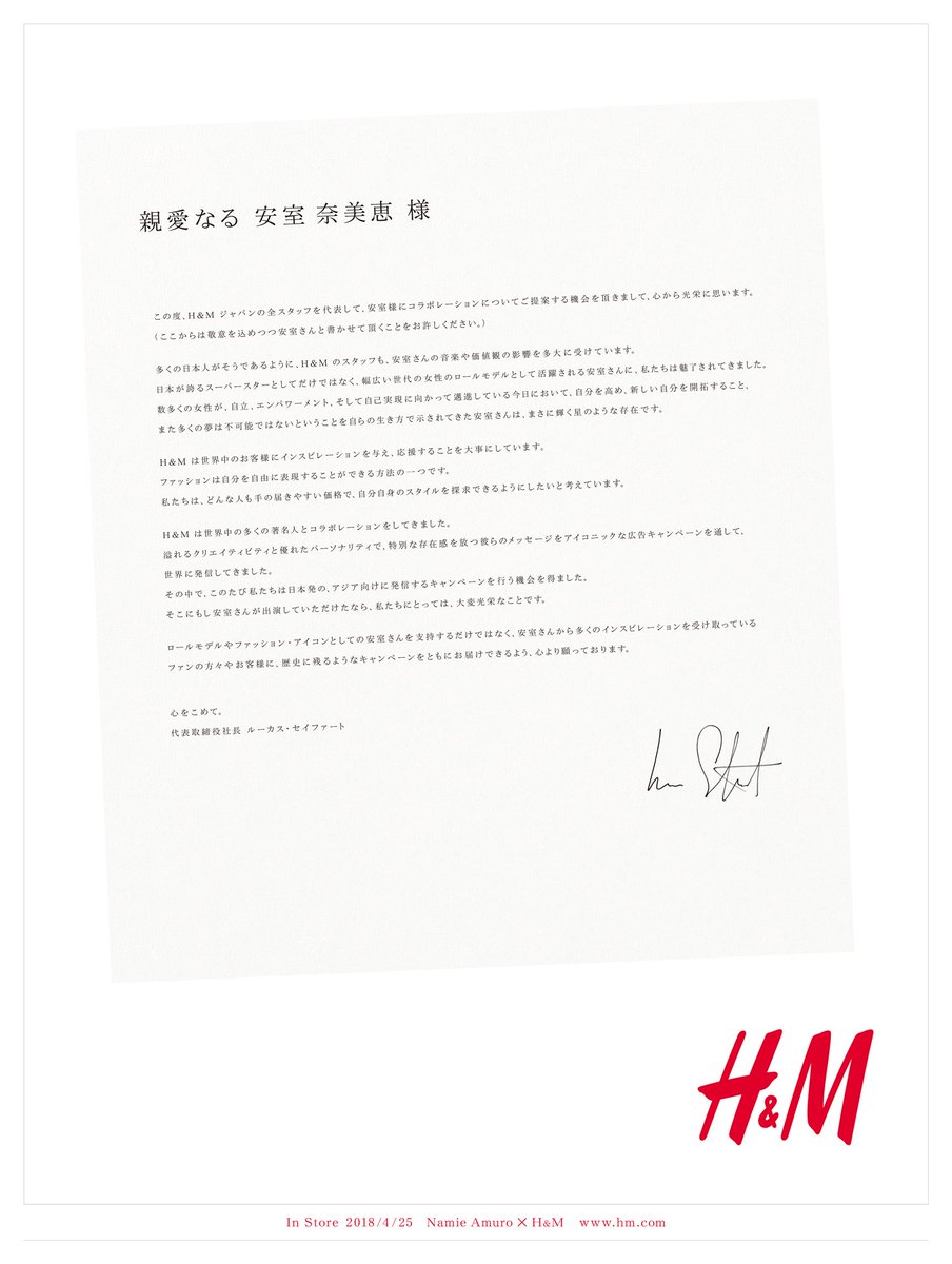 安室奈美恵、「H&M」とコラボ きっかけとなった手紙公開 #安室奈美恵 【ほか写真あり】
