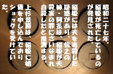 稲姫には夫を毒殺した疑惑があり、信之の姉・阿茶は、稲姫が夫殺害の罪にさいなまれ自殺したと推測する。