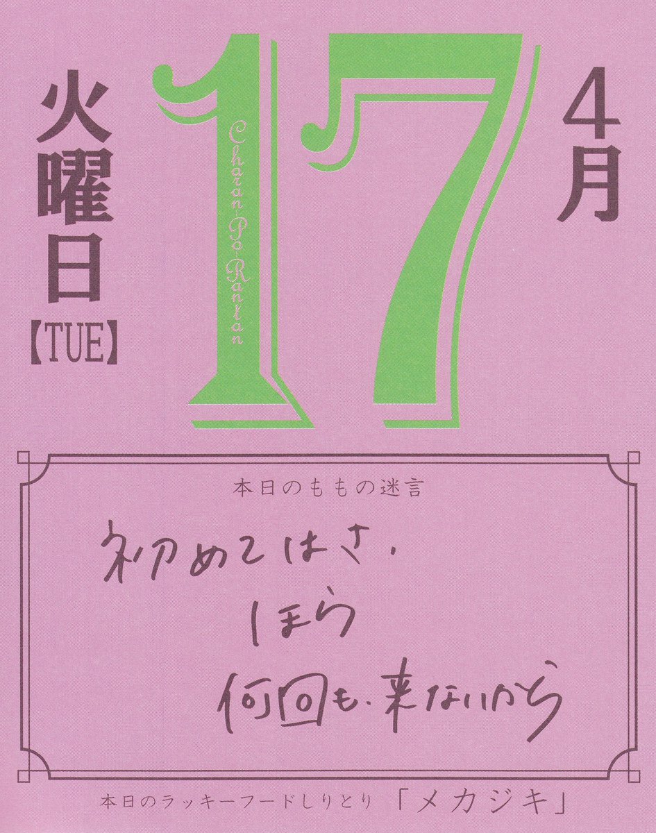 #日めくりカレンダー pic.twitter.com/2X0SGBQufP2018年4月17日 08:26