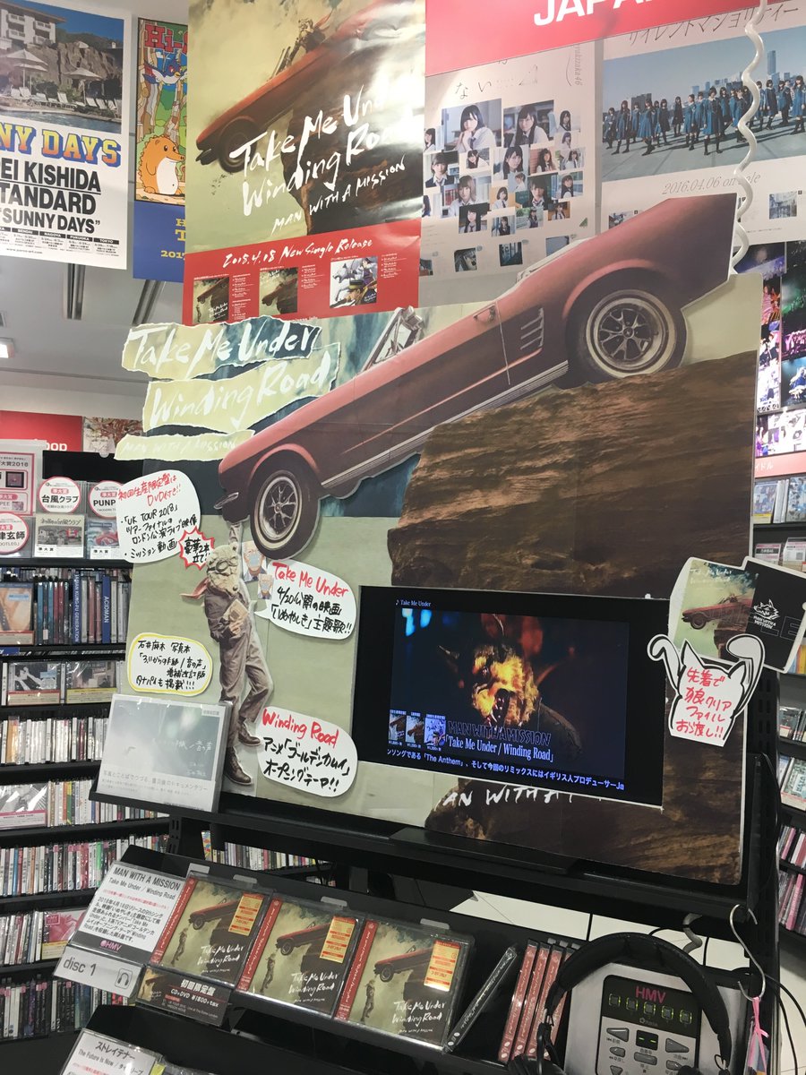 【MAN WITH A MISSION】シングル「Take Me Under / Winding Road」入荷!!GAMADASEに行けず、半べそをかきながら展開作りました…行きたかった!先着購入特典は狼クリアファイルです!お求めの方はお早めに🐺また、展開場所に幡ヶ谷再生大学の冊子も置いてます。自由にご覧下さい。 #MWAM #マンウィズ pic.twitter.com/G98lmzG6ic