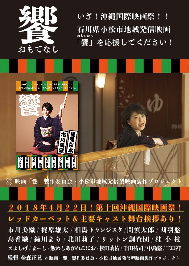 #沖縄国際映画祭 🎞で私が主演、ヒロインを務めさせて頂いた小松市の地域発信型映画『饗-おもてなし-』が上映されます🤗