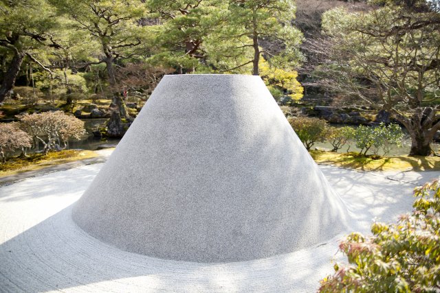「銀沙灘」と「向月台」。現在は採取禁止になった白川砂ですが、銀閣寺の方に聞いたところ特殊なルートで仕入れて、ここだけは本物を使っているとか。柔らかそうに見えますが、踏んでも崩れんぐらい上手に固められているようです。(以倉) #ブラタモリ #実況ツイート pic.twitter.com/UWyA6H2Un3