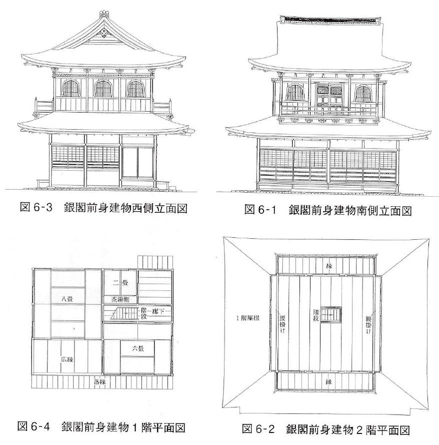銀閣の1階と2階の正面の向きが違うのは『東山殿の建築とその配置』(宮上茂隆)によると、他から移築され、その際に1階部分だけ90度回転させたからとか。前身建物の復元図が示されています。確かに、東西の庇だけ異常に急な勾配ですし、不思議な建物ですよね。(以倉) #ブラタモリ #実況ツイート pic.twitter.com/rDW2X9zv2V