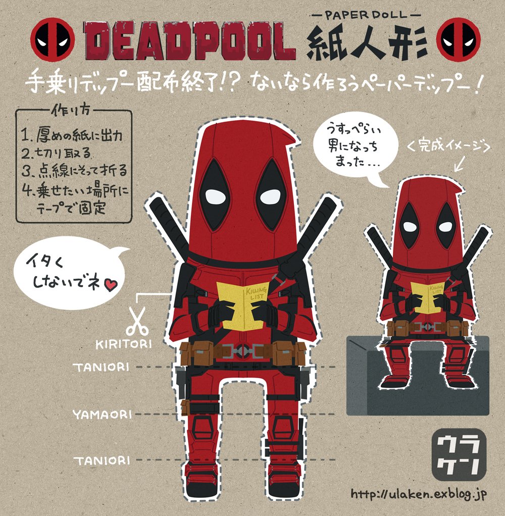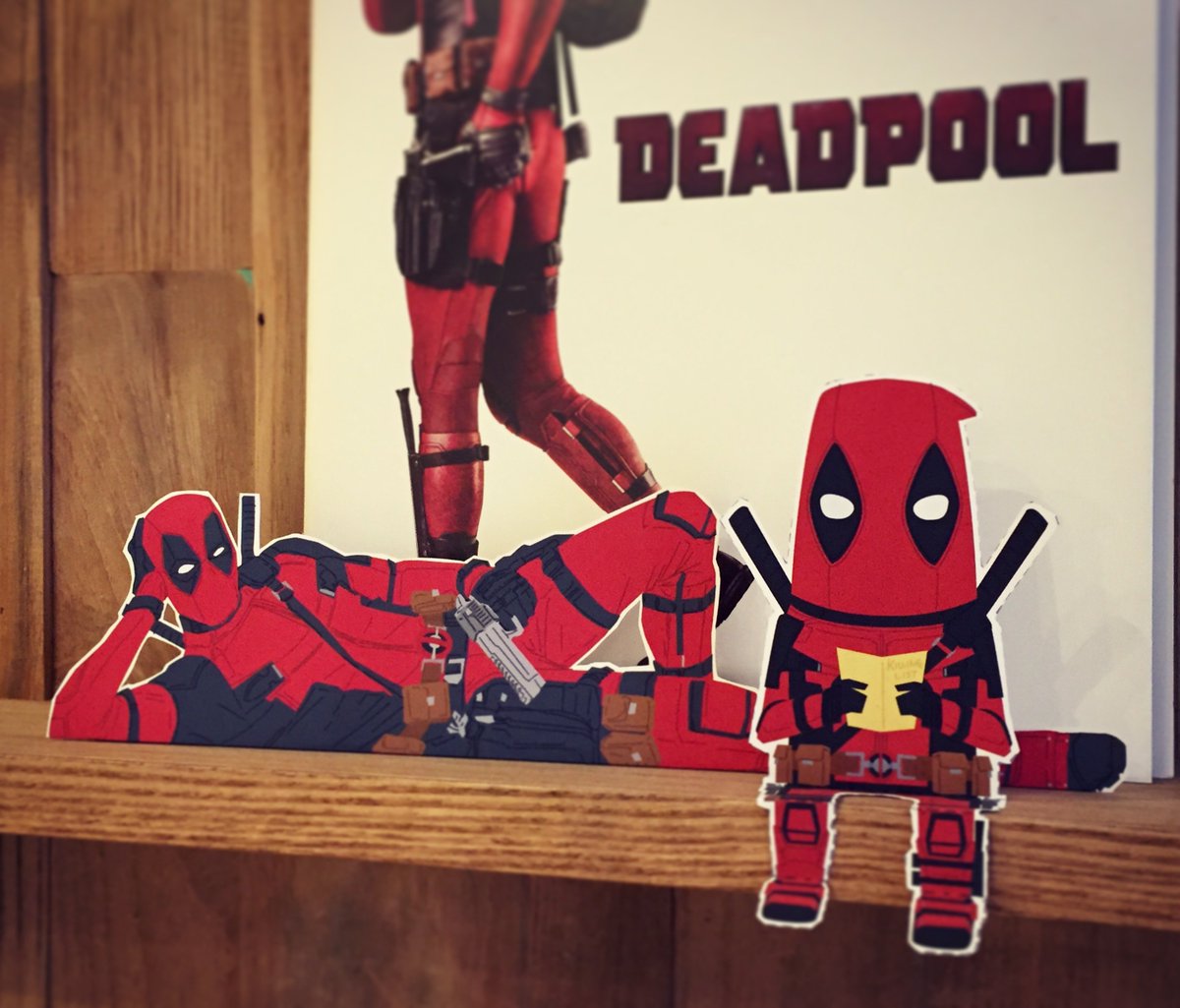 #ライアン・レイノルズ 来日中ってことで、2年ぶりに #ペーパーデップー 作った。ついでにヘッダー用に描き起こした涅槃像もペーパー涅槃デップーにしといた。