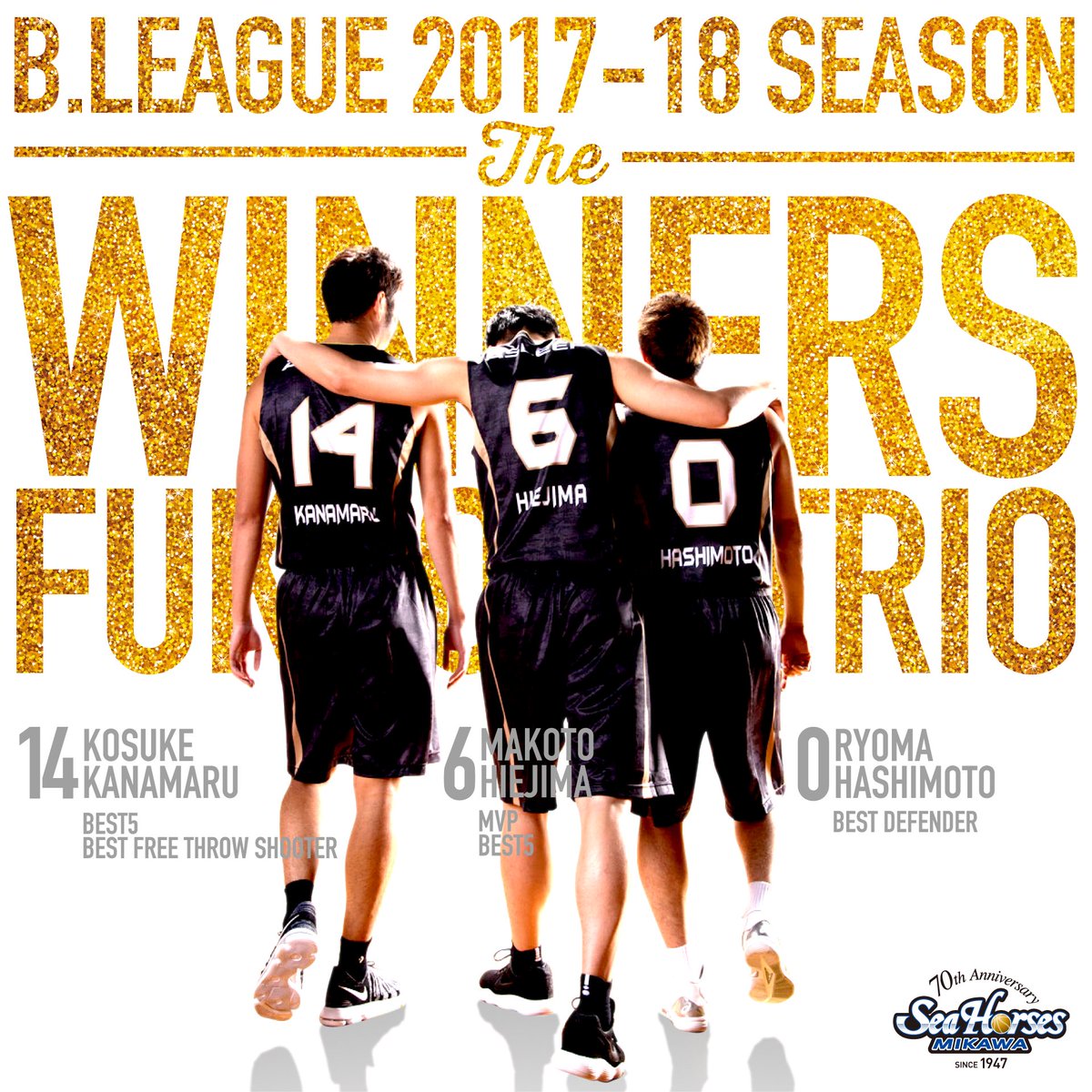 2017-18 シーズン、皆さまの青援により #6比江島(MVP/BEST5) #14金丸(BEST5/BEST FT) #0橋本(BEST DEFENDER)3選手が素晴らしい賞を受賞🙌