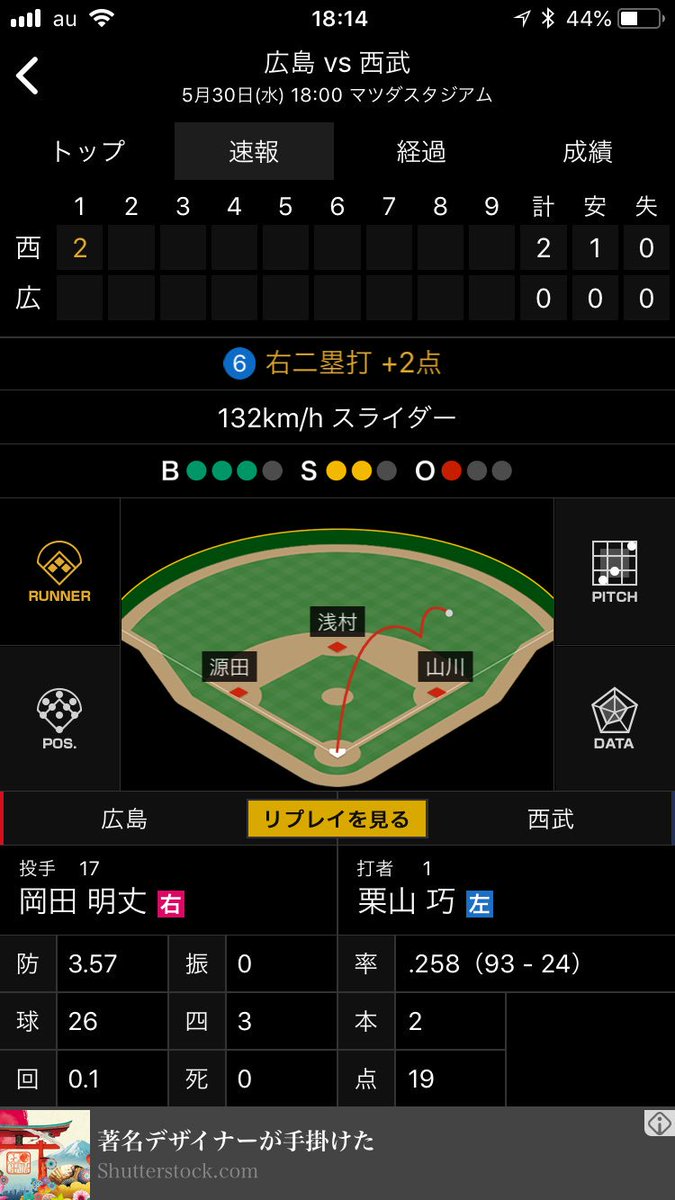 先制2点タイムリー pic.twitter.com/nL50MLjnTz2018年5月30日 18:15