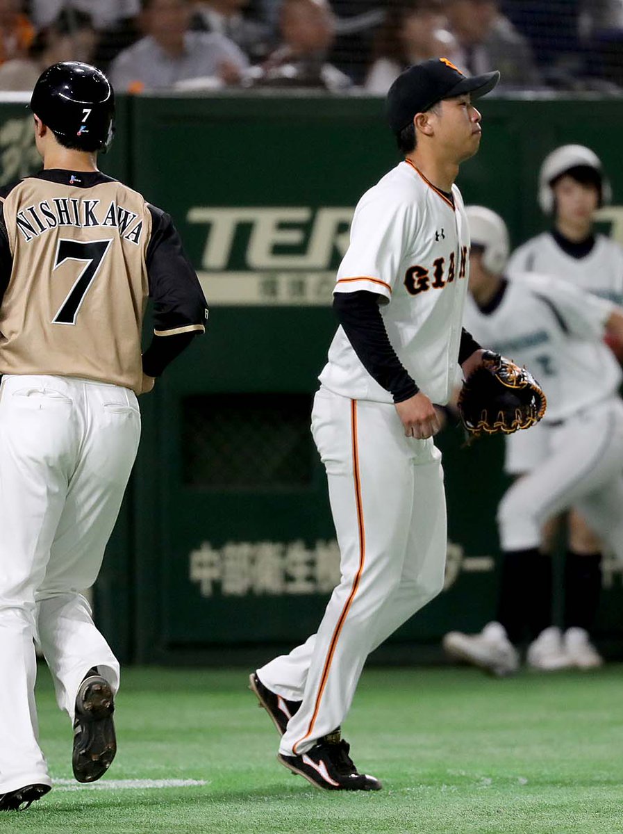 三回表、 #鍬原拓也 投手は、1死満塁の場面で、日本ハム・中田選手に犠飛を許し同点とされる。つづく、レアード選手には適時二塁打を許し、この回3点を奪われる。巨人 1-3 日本ハム #ジャイアンツ #巨人 #giants #奮輝 #東京 #交流戦 pic.twitter.com/8Yoy5pcbnw2018年5月31日 19:04