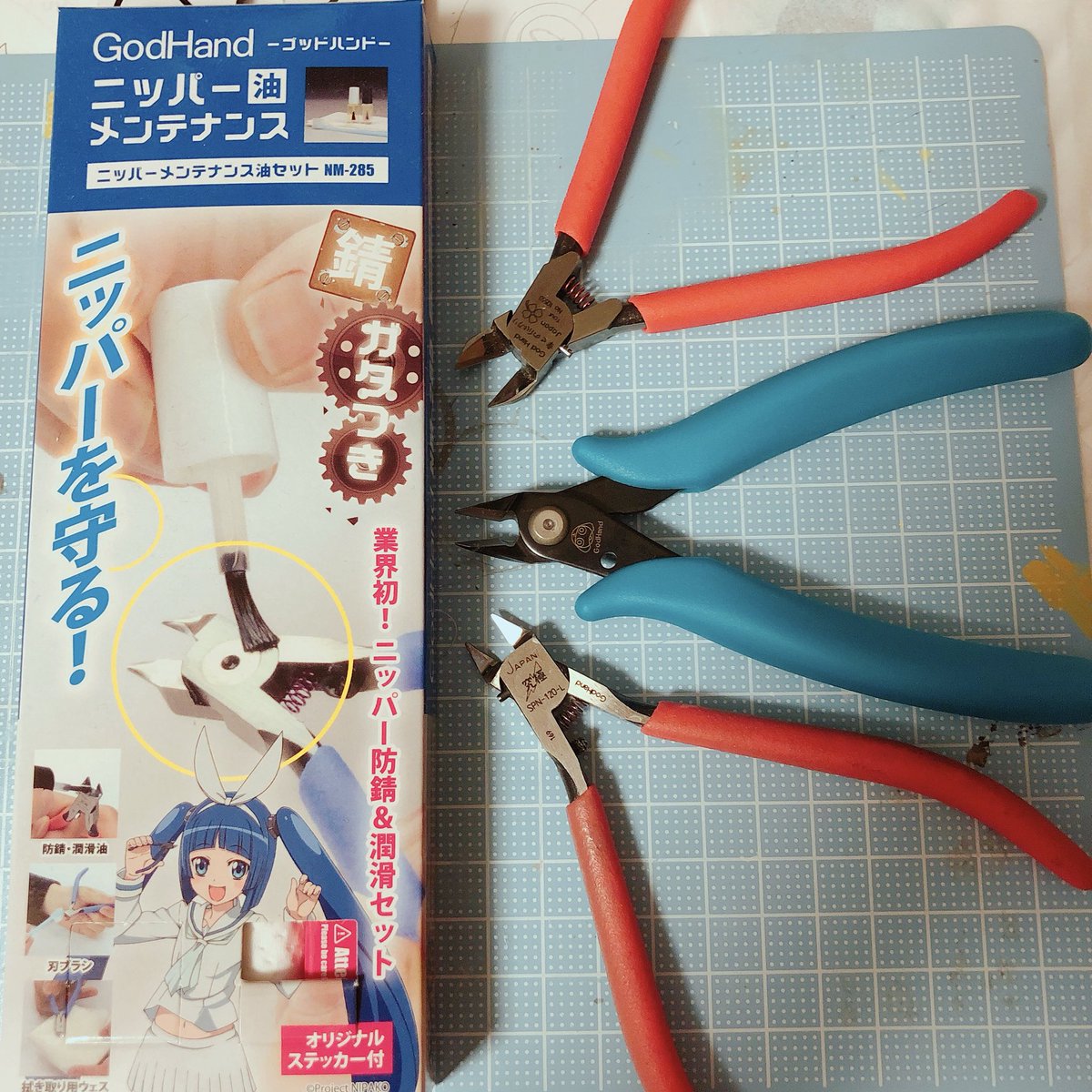 手持ちのニッパーをメンテナンスしようねー♪ニパ子ちゃんおめたんっ!