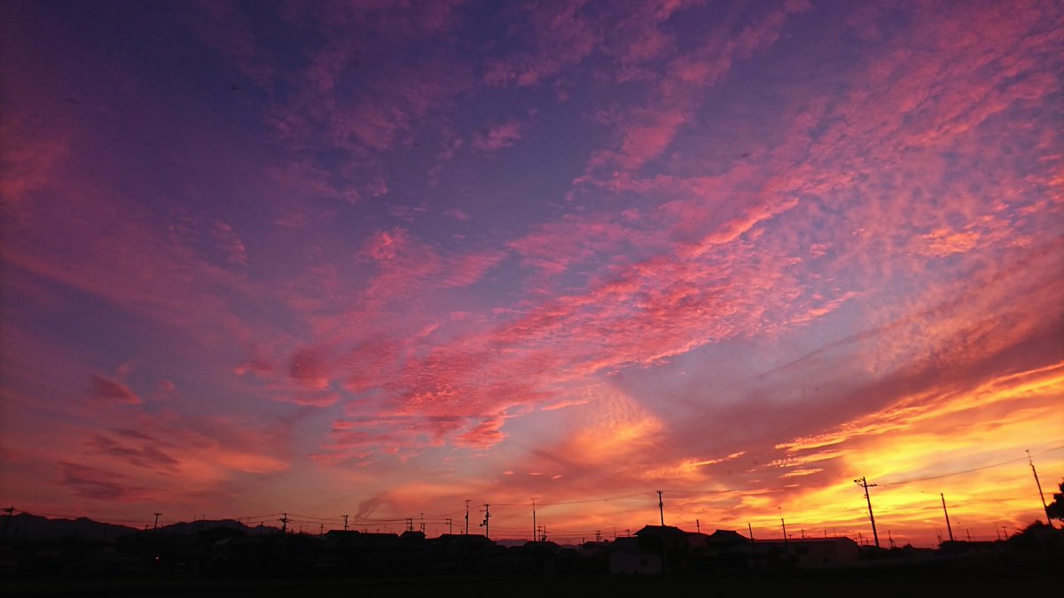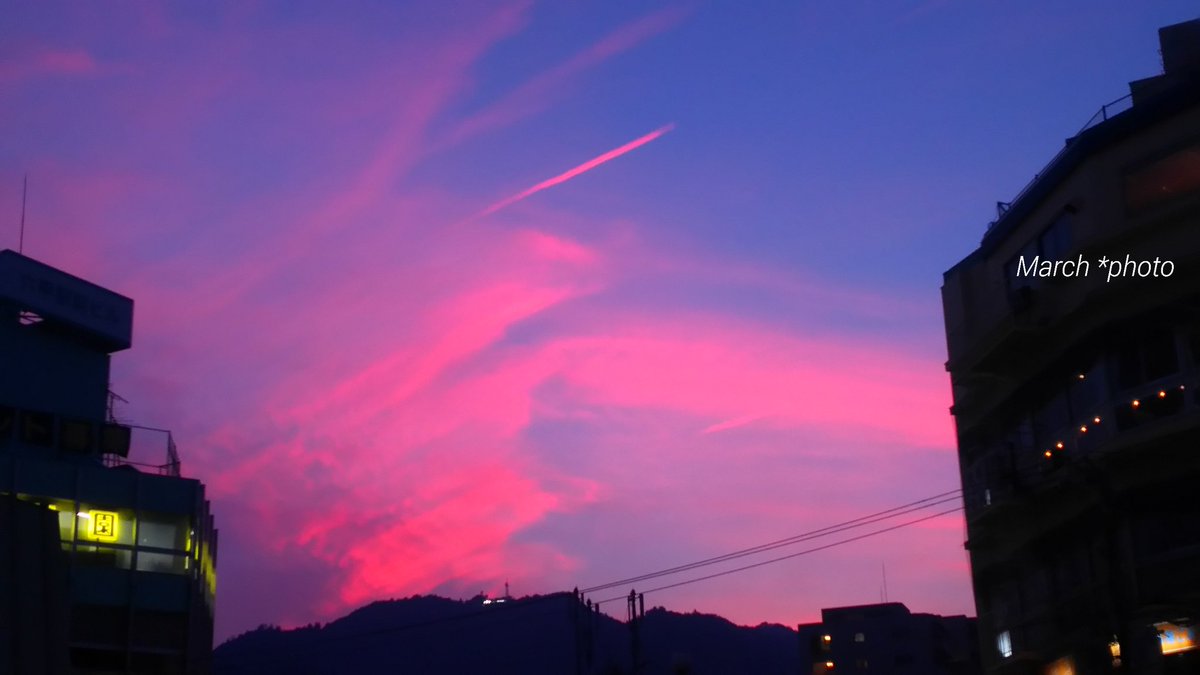 空一面 綺麗なバラ色の #夕焼け が広がりました!この時期の奇跡です!