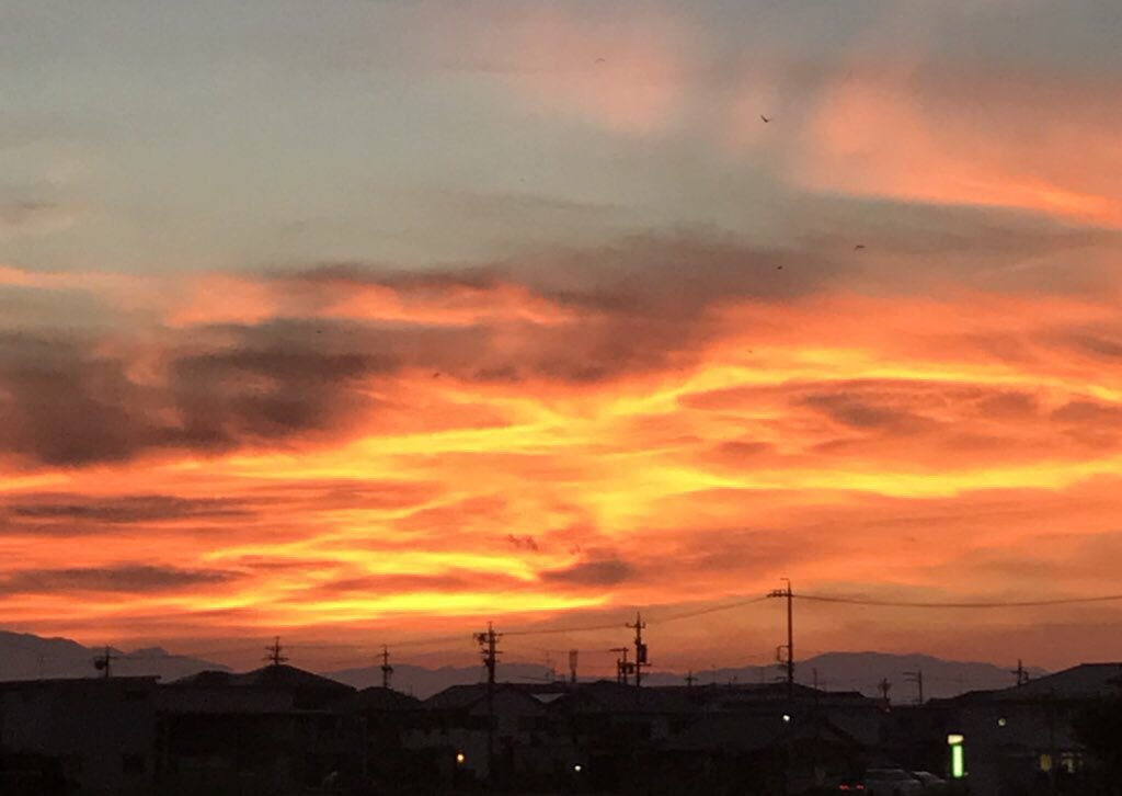 今日の夕焼け燃える空。