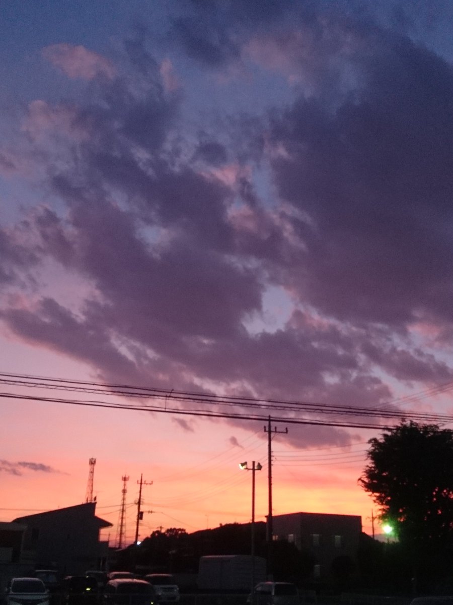 みなさん、こんばんは😄今日も優しい繋がりをありがとうございました🙇明日もよろしくお願いします(^-^)/🎵おやすみなさい✨素敵な夢をヾ(o´∀`o)ノ🌃 #夕焼け #夕空 #今日の空 pic.twitter.com/bnoS0Zq92I