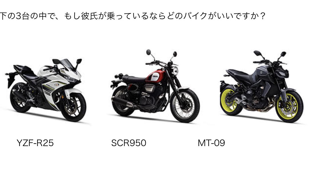 下の3台の中で🏍もし彼氏が乗っているなら💖どのバイクがいいですか???