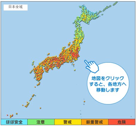 環境省のサイトで暑さ指数(WBGT)の実況と予測がみられるよ!鳥取では「危険」の表示がある地点も!?→ wbgt.env.go.jp
