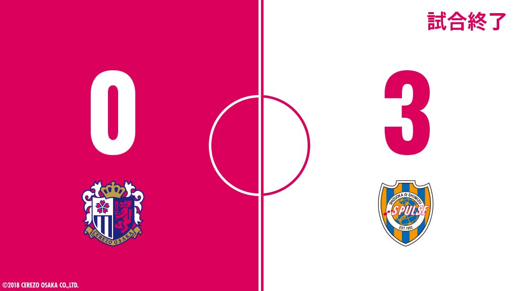試合終了。C大阪 0-3 清水 cerezo.jp #cerezo pic.twitter.com/v8LHLXy9rS
