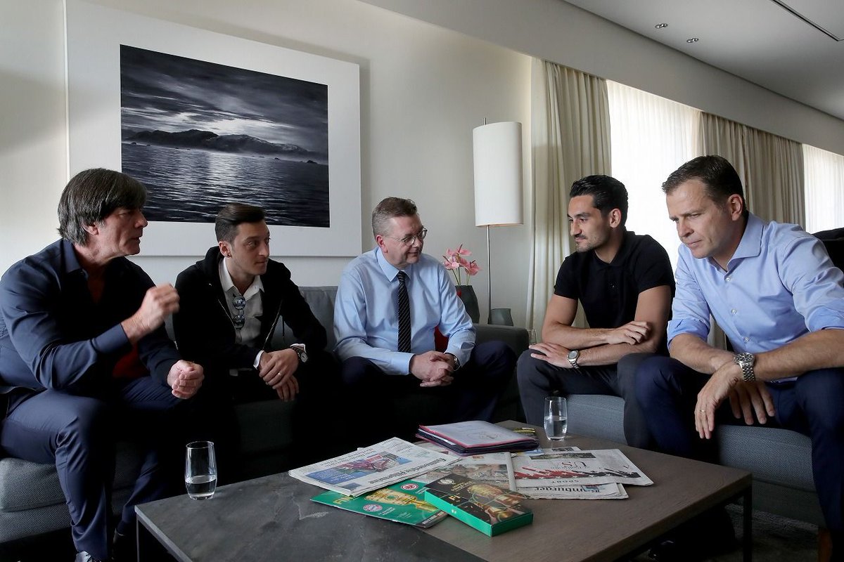 エジルの代表引退の声明、非常に興味深い ①ロンドンでトルコの首相エルドアンの訪問を受けた際の写真がドイツメディアに政治利用されバッシングを浴びる②2016年からドイツサッカー連盟の会長を務めるグリンデルがそれを理由に代表から外そうとする。レーヴ監督の擁護で代表落選は免れる #エジル