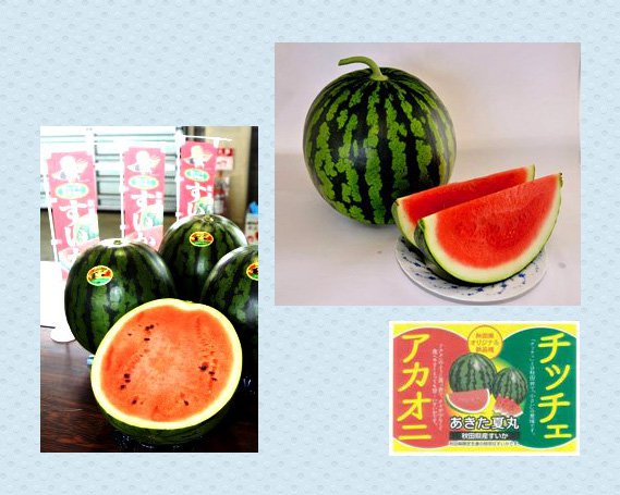 秋田県オリジナル品種「あきた夏丸」のアカオニとチッチェな。ブラックもあるよ。たっはー!こんなところにまで三平クンが!…まあ、鮎はスイカの匂いがするからね。