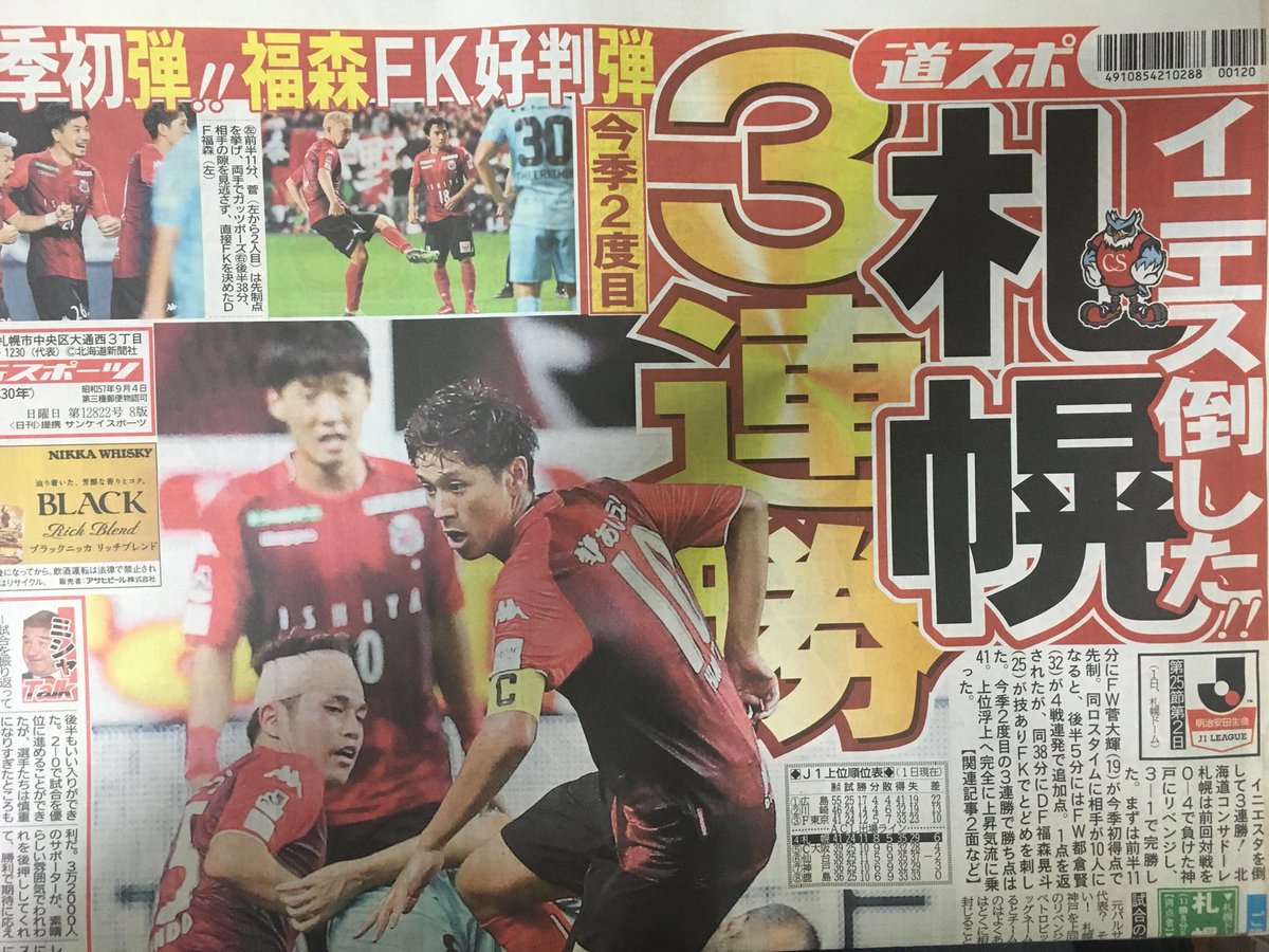 #consadole #コンサドーレ pic.twitter.com/mo3oZBXX2n2018年9月1日 09:23