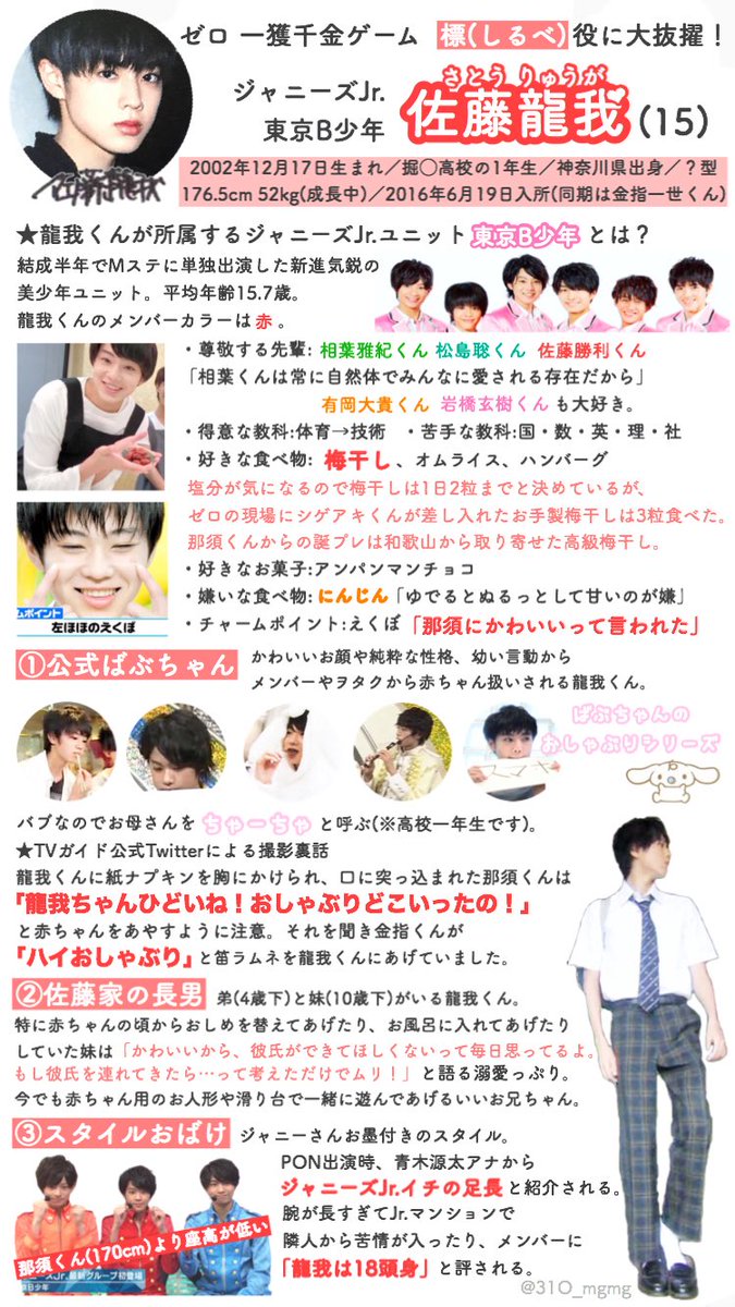 ゼロ 一獲千金ゲームで標役を演じた佐藤龍我くんのステマシートを作りました🌟
