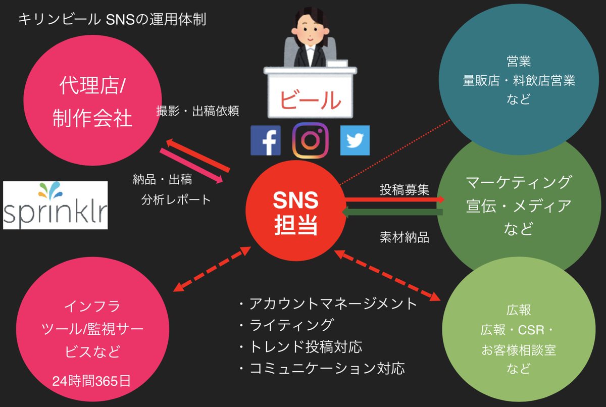 キリンビールさんのSNSの運用体制がこちら⬇️👏