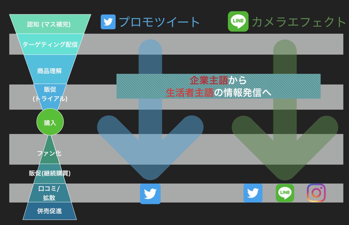 さっき @simakoo1 さんに投影いただいた、LINEのフルファネル資料こちらです #TwitterとLINEでやってみた pic.twitter.com/JMzymqUlSq