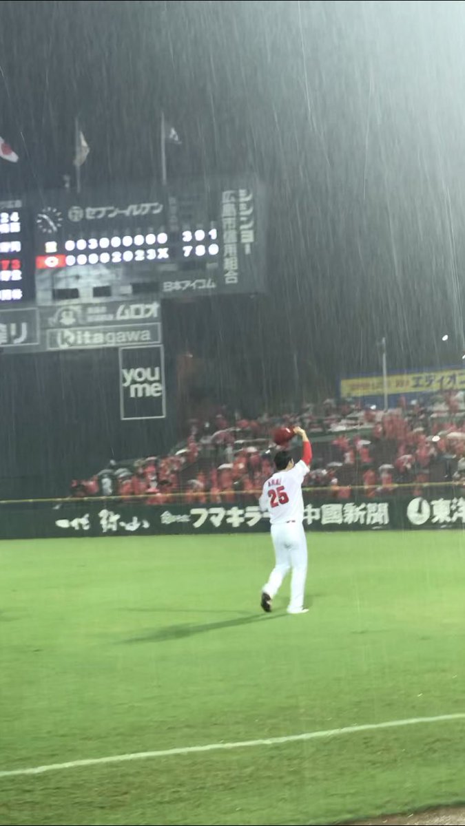 雨に耐えたおかげで、こんなに幸せなことが😭新井さんとハイタッチできるなんて!わたしが見れる人生最後の新井さんヒーローインタビューかもしれんし、ハイタッチなんて人生初じゃし、ほんまにありがとうございます!!あの土砂降り一生忘れん!!感謝