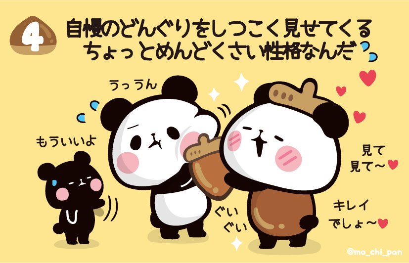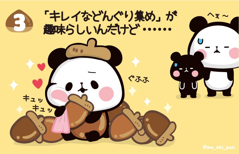 #もちもちぱんだ #おもち #パンダ #ちびぱん #どんぐりぱん #どんぐり #秋 #もくようび pic.twitter.com/qmE3zZQYaZ2018年9月27日 07:00