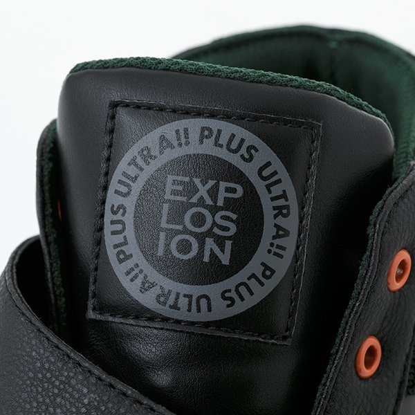 爆豪のヒーローコスチューム時の靴をイメージしたデザイン。シュータンタグには「PLUS ULTRA!!」と、個性「EXPLOSION(爆破)」の文字をあしらいました♪ #ヒロアカ #heroaca_a