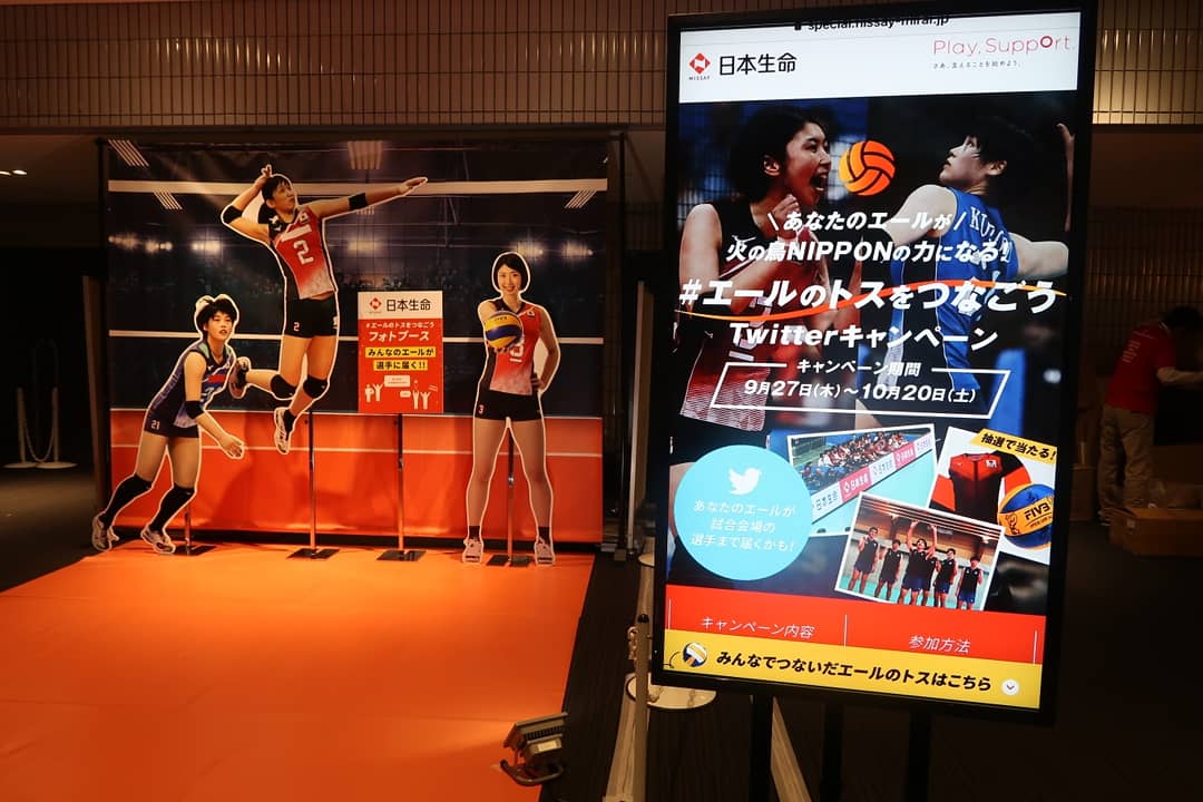 2018 #世界バレー 、横浜アリーナ1階の日本生命のブースでは、コートをイメージしたフォトスポットが登場😊