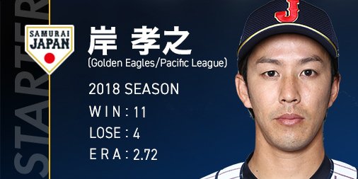#侍JAPAN の先発投手は #岸孝之( #楽天) です。
