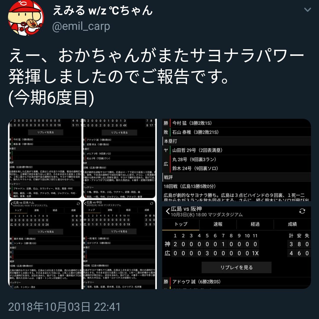 — ひろ🎏🎏→日米野球 (@carpKousuke2)