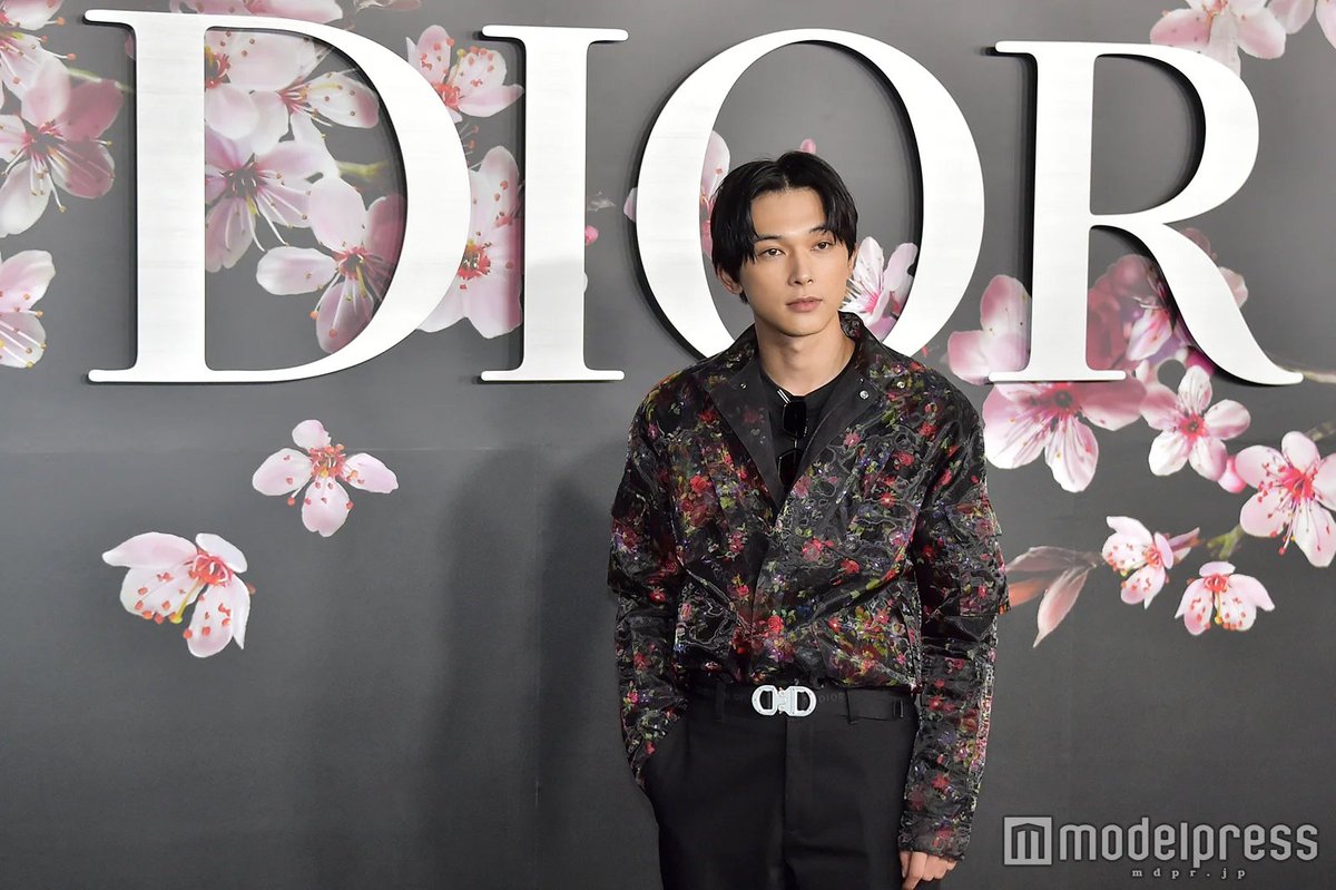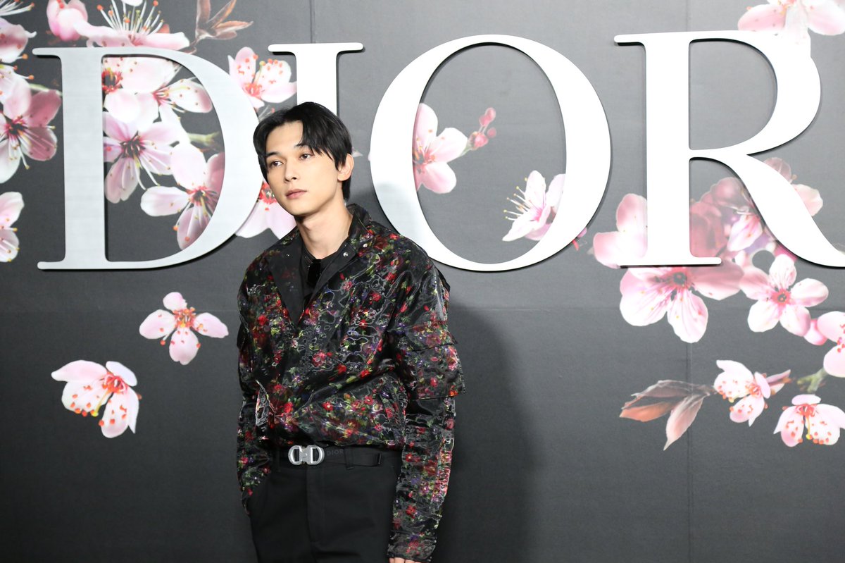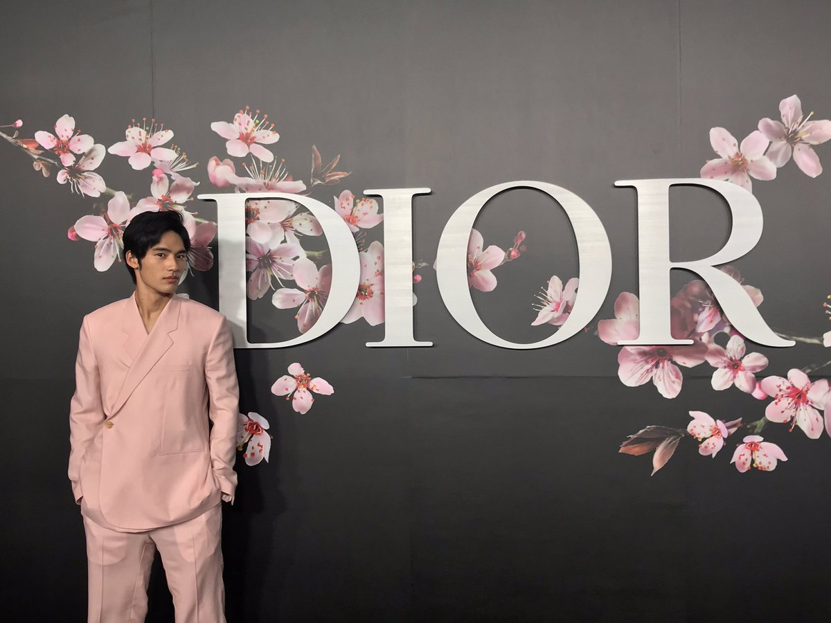 #DiorPreFall のキーとなるのでしょうか、ロゴの後ろには大きく描かれた桜の花。ディオールはムッシューの時代より、「花」を大切にしてきました。(そういえばラフシモンズのデビューショーは感動的な花のランウェイでしたね)。俳優の岡田健史さんは美しい桜色のスーツを着て登場🌸 pic.twitter.com/ANXN4Jdfvy