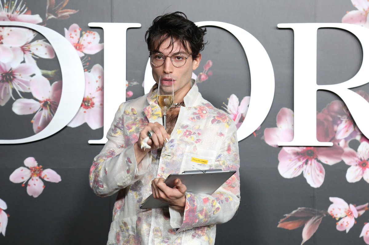 エズラ・ミラーさんは毎回イベントの衣装が注目されますが、 #DiorPreFall では19春夏コレクションより鮮やかな花柄のロングコートをまとって登場。東京に舞い降りた春の魔法使いかしら💐 pic.twitter.com/1IAgOoUfQX