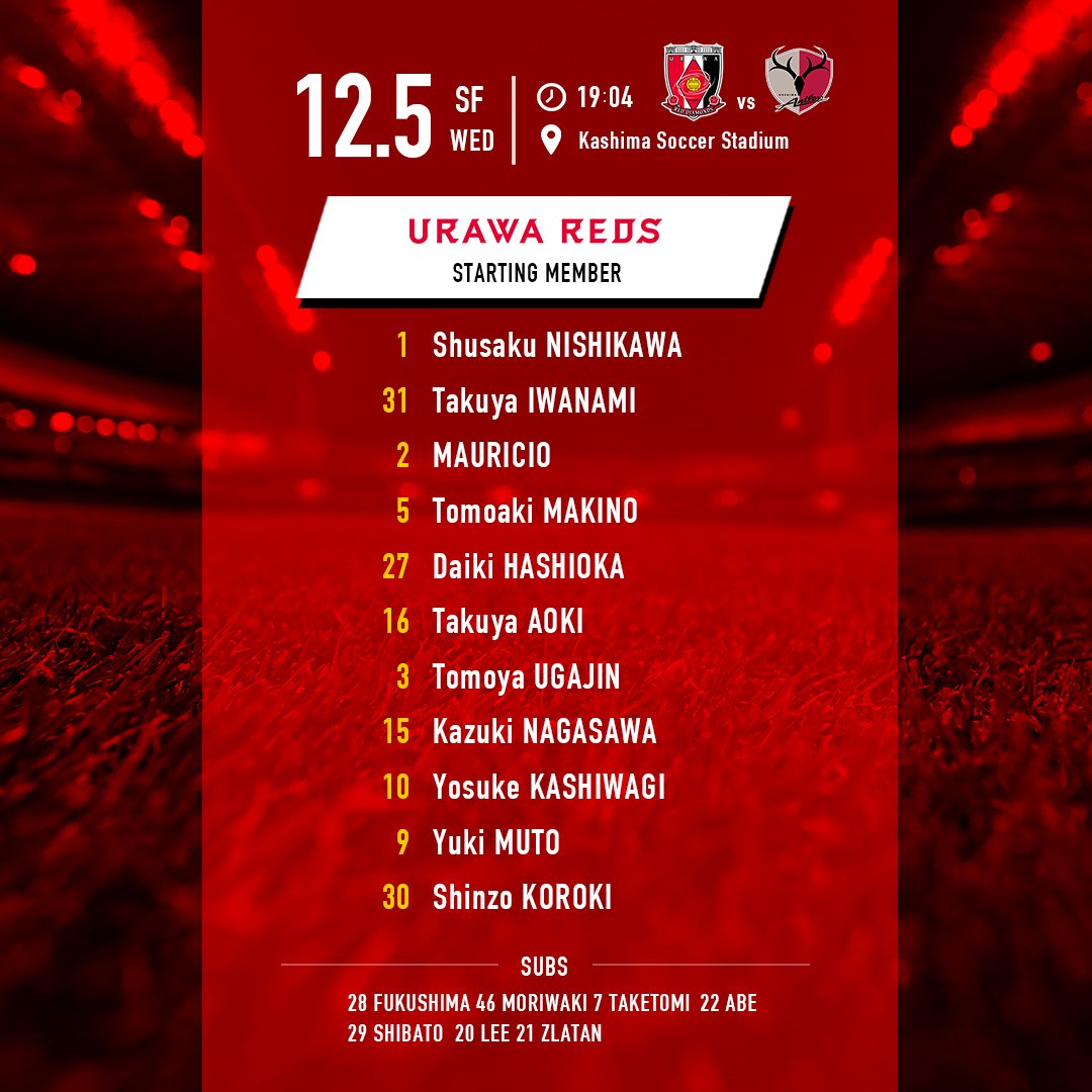 🌸 #天皇杯 準決勝 浦和vs鹿島 スタメン🌸