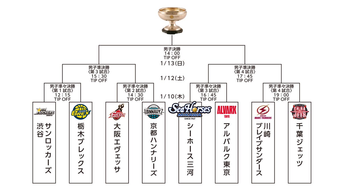 #天皇杯 ファイナルラウンド、 #川崎ブレイブサンダース の初戦の相手が 前大会のチャンピオン #千葉ジェッツ に決定しました✈️⚡️