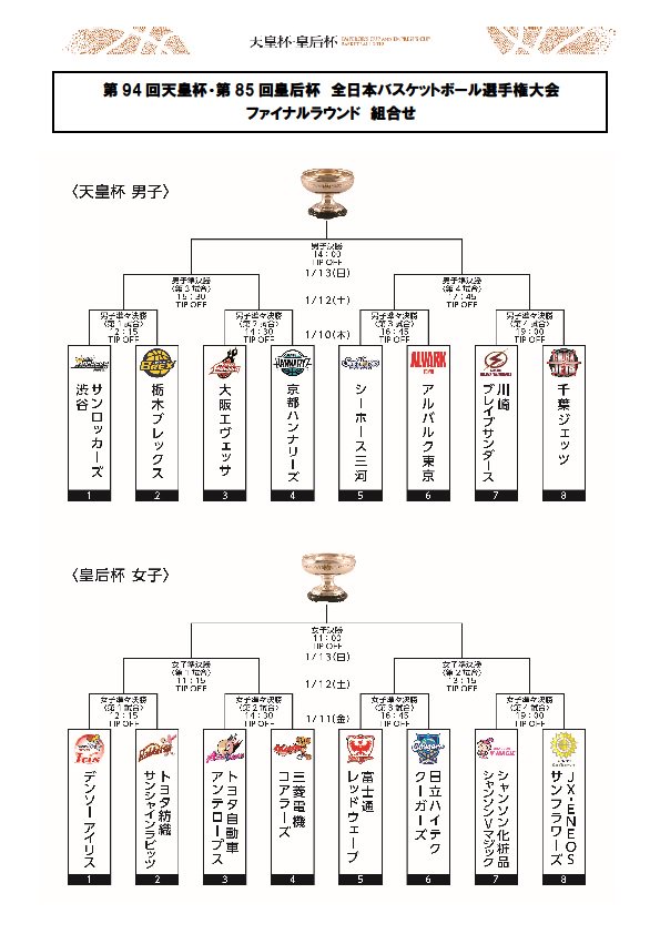 抽選会の結果、天皇杯ファイナルラウンドの初戦は、 #川崎ブレイブサンダース さんでした。