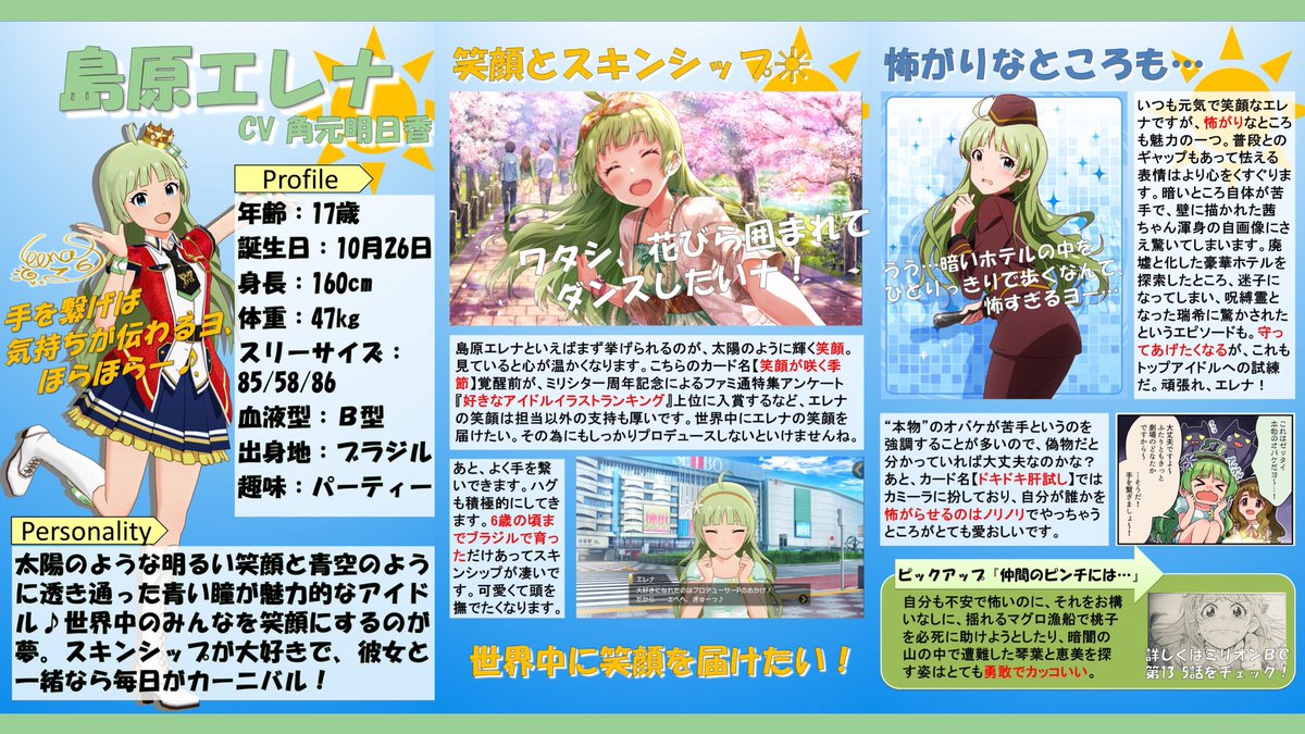 まず投票の前に島原エレナのことを少しでも知って欲しいのでダイマ資料置いときますね! #TC島原エレナ #アイドル投票TC pic.twitter.com/t8EEEh0jkb