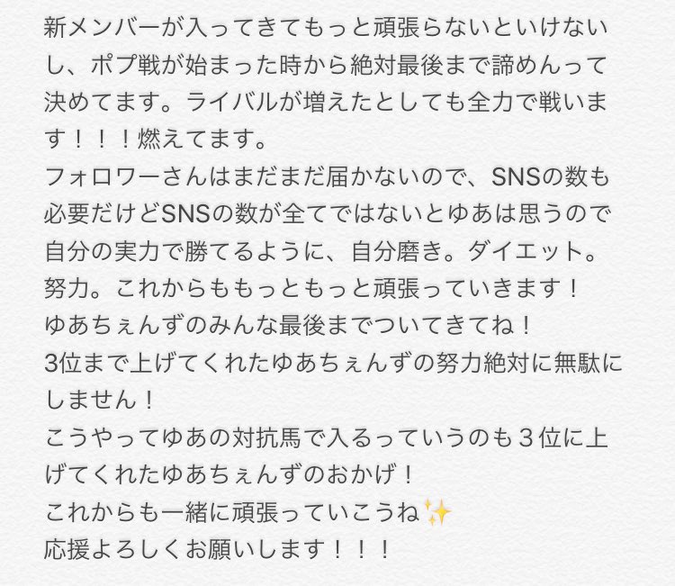 またライバルが増えてきましたね、。みんな引き続き応援しよ💪🏻