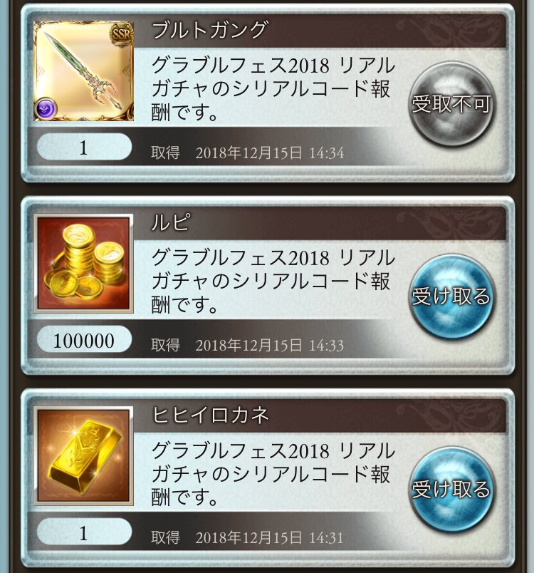 グラブルリアルガチャ結果