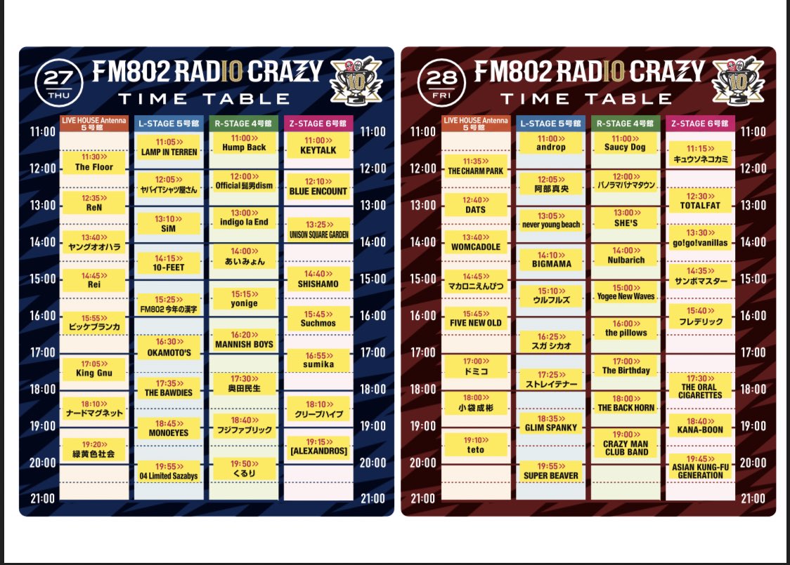 #FM802 RADIO CRAZY タイムテーブル発表‼️‼️