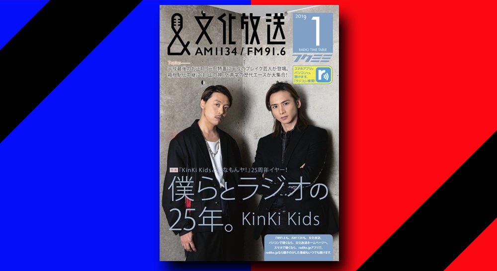 文化放送のフリーペーパー「フクミミ」新春1月号は、2019年に番組25周年イヤーを迎えるKinKi Kidsのお二人が表紙&巻頭特集に登場します!!