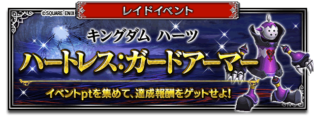 レイドイベント『ハートレス:ガードアーマー』が始まりました‼️次元の狭間に現れるガードアーマーに挑み、イベントptとレイドコインをゲットして、個人報酬やイベント限定装備を手に入れよう✨